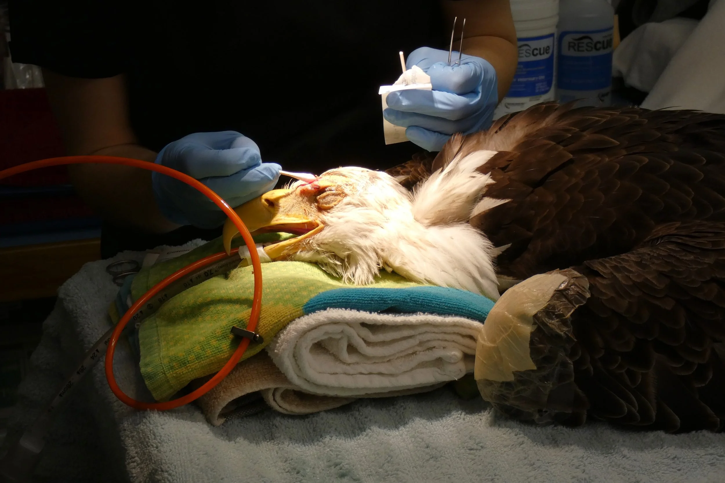 Our colleagues at City Wildlife stabilized the eagle before arranging transportation from Washington D.C. to our clinic in Newark, DE, and the Tri-State rehabilitation journey began.